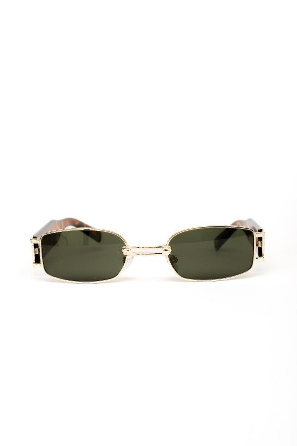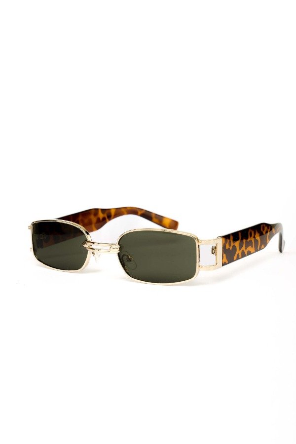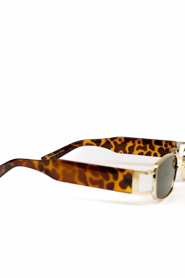 Con su diseño rectangular, marco metálico dorado y patillas animal print, Italy combina lo clásico con un estilo audaz y moderno.