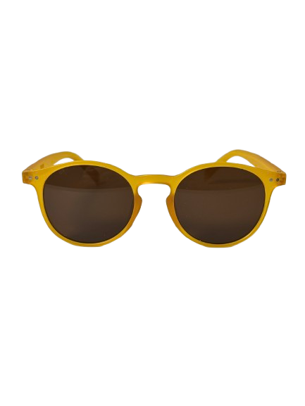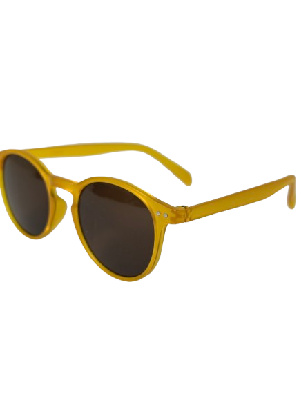 Anteojos de sol fabricados en acetato resistente con marco caramelo con cristales orgánicos trasparentes. Con protección UV400