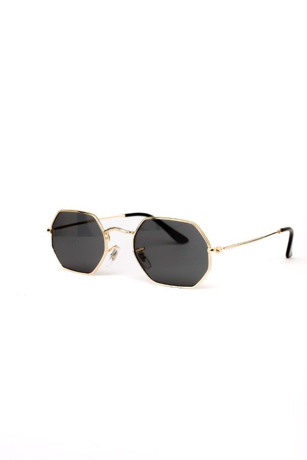 Anteojos de sol fabricados en metal ultra resistente dorado y cristales orgánicos negros. Con protección UV400.