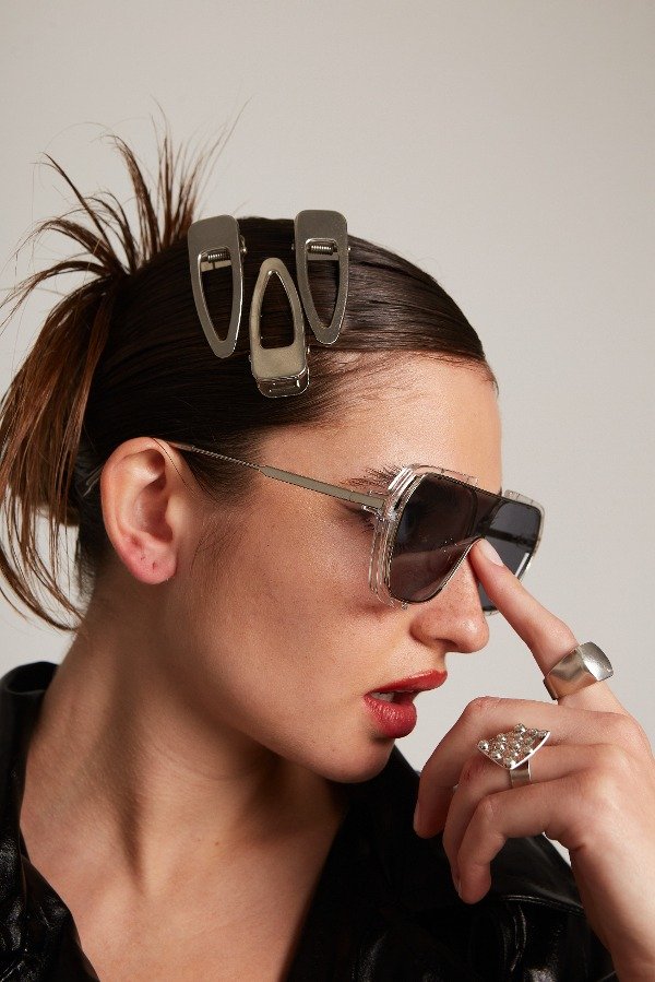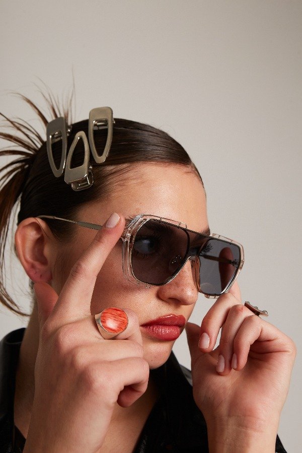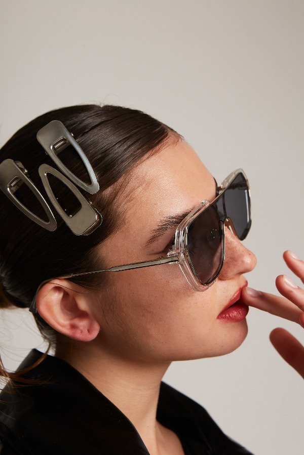 Anteojos de sol fabricados en marco de rígido gris con patas metálicas resistentes y cristales negros. Con protección UV400.
