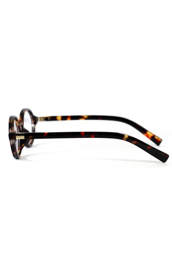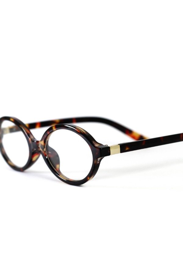 Gafas de sol de acetato con un particular marco ovalado. La montura presenta bordes finos color carey, y lentes ultraplanos que realzan su extrema ligereza.