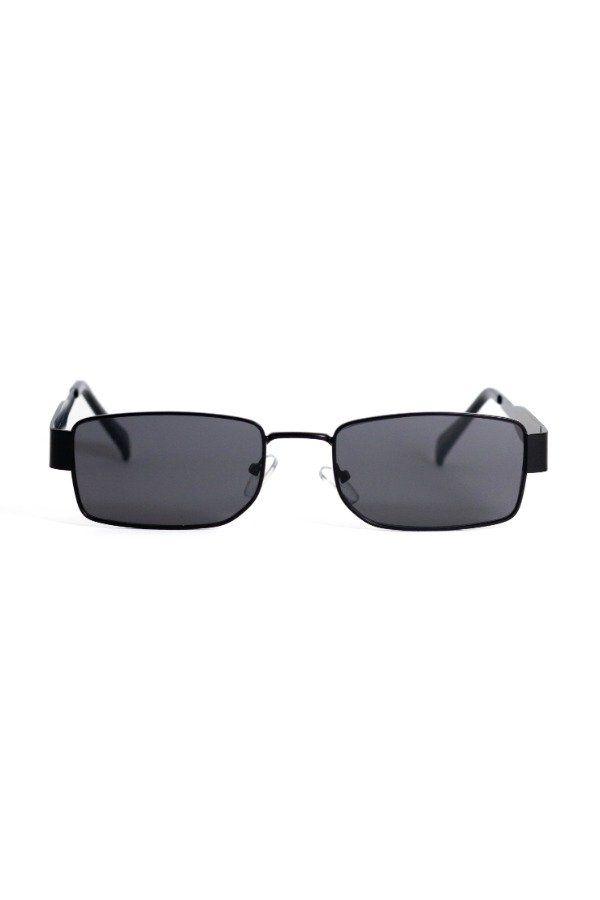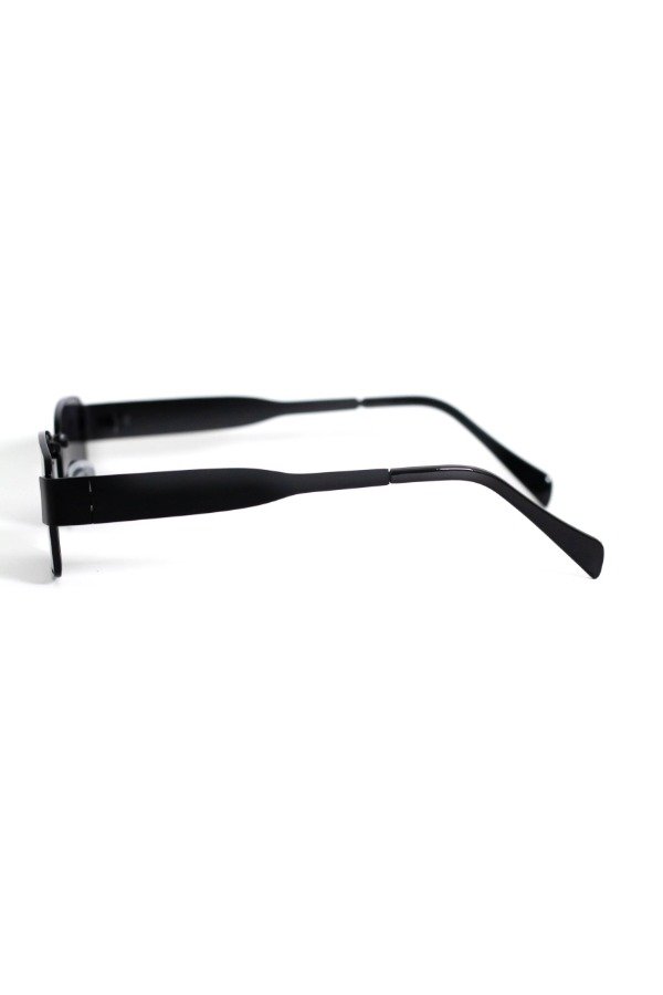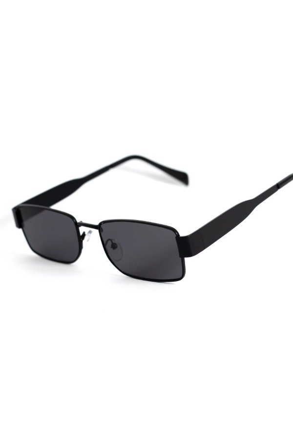 Anteojos de sol fabricados en metal ultra resistente con marco negro y cristales orgánicos negros. Con detalle colgante en el cristal. Con protección UV400 y bisagras metálicas. Medidas: Alto: 3,5 cm Ancho: 15 cm Profundidad: 14 cm