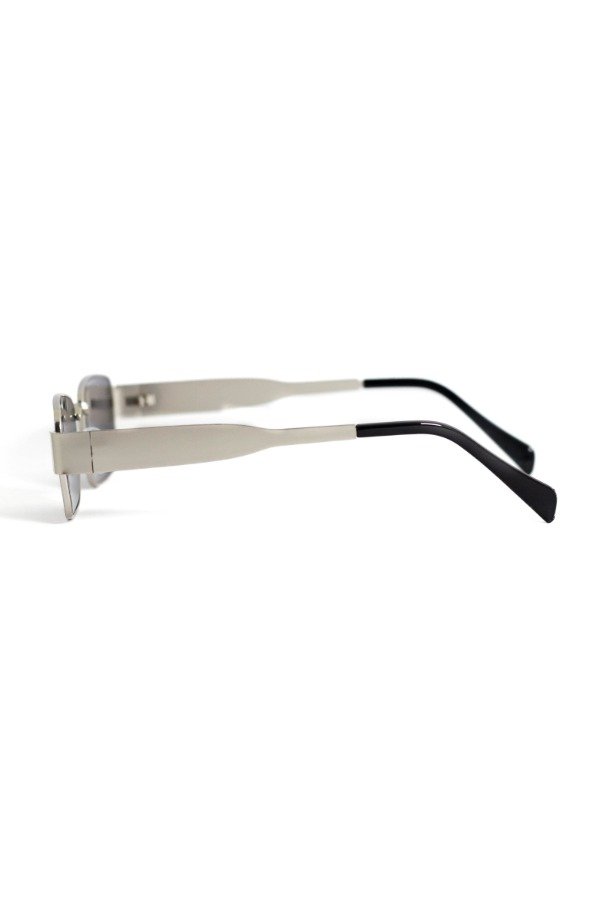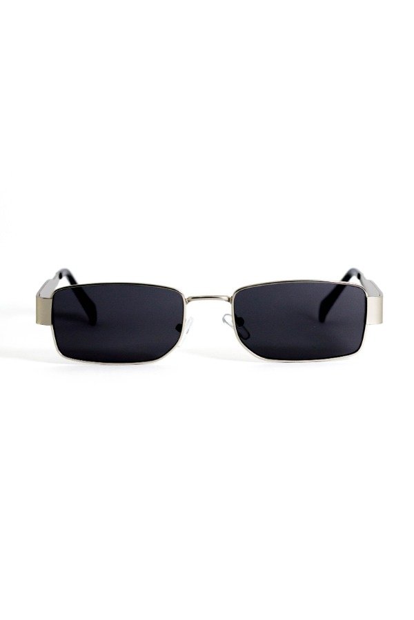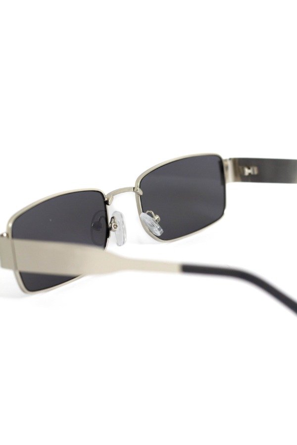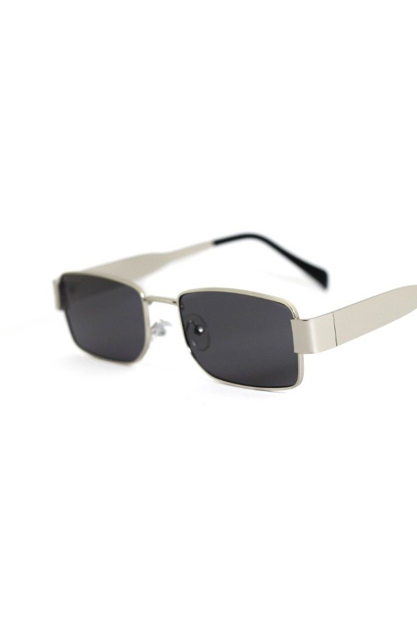 Anteojos de sol fabricados en metal ultra resistente con marco plateado y cristales orgánicos negro. Con detalle colgante en el cristal. Con protección UV400 y bisagras metálicas. Medidas: Alto: 3,5 cm Ancho: 15 cm Profundidad: 14 cm
