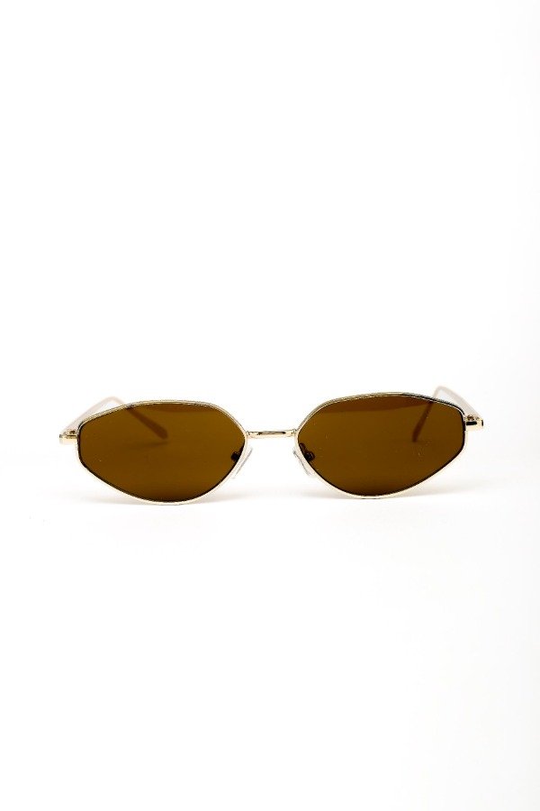 Anteojos de sol fabricados en metal ultra resistente con marco dorado y cristales orgánicos marrones. Con protección UV400 y bisagras metálicas.