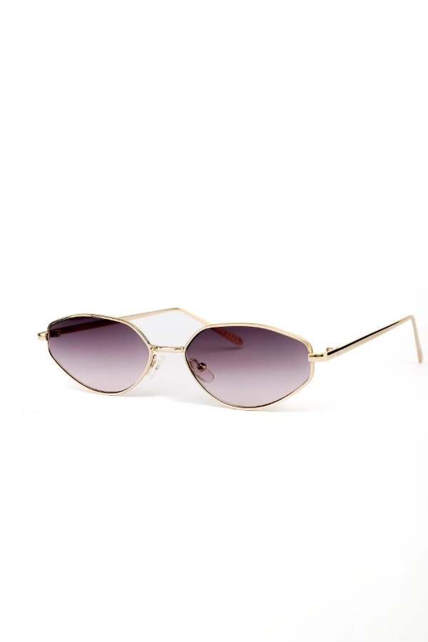 Anteojos de sol fabricados en metal ultra resistente con marco dorado y cristales orgánicos morados Con protección UV400 y bisagras metálicas.