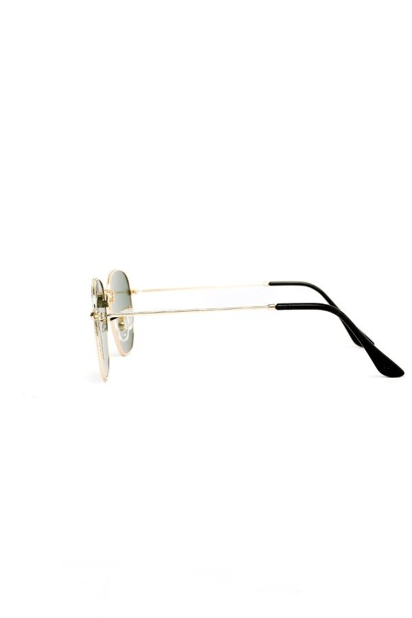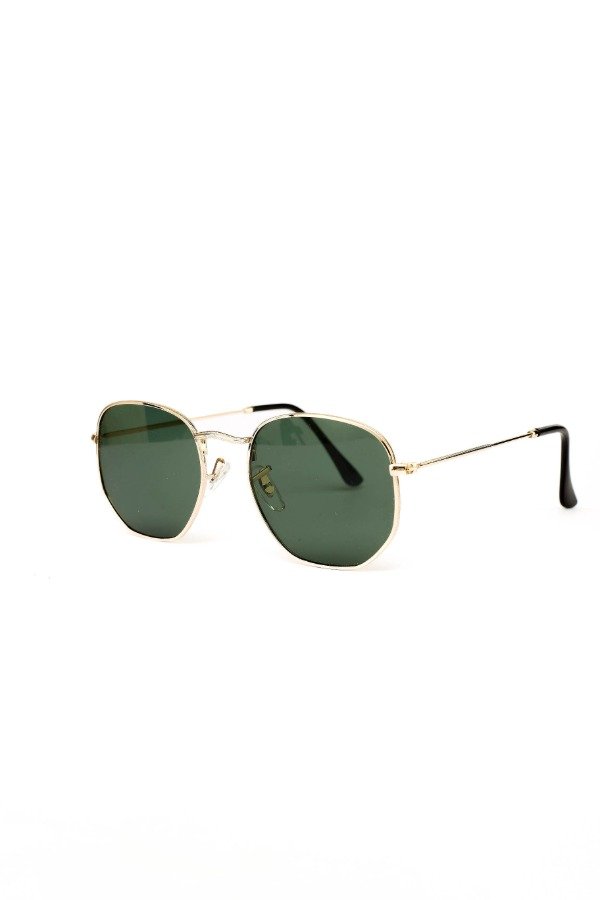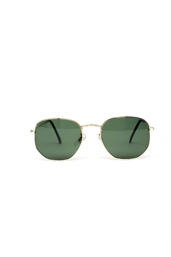 Anteojos de sol fabricados en metal ultra resistente con marco dorado y cristales orgánicos verdes. Con protección UV400.