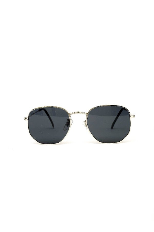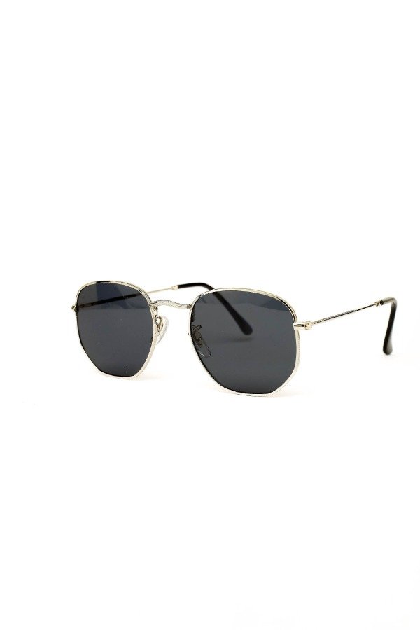 Anteojos de sol fabricados en metal ultra resistente con marco plateado y cristales orgánicos negros. Con protección UV400.
