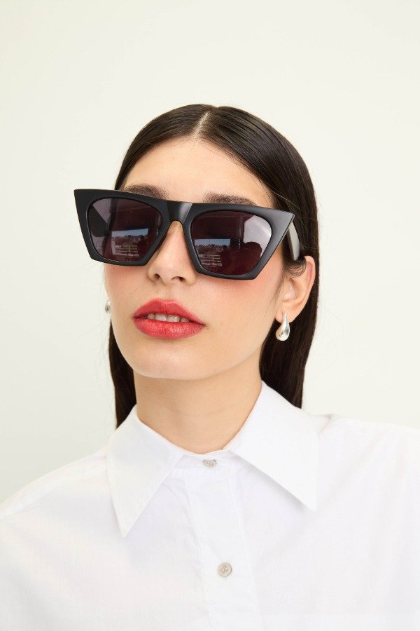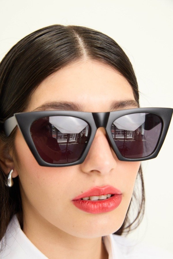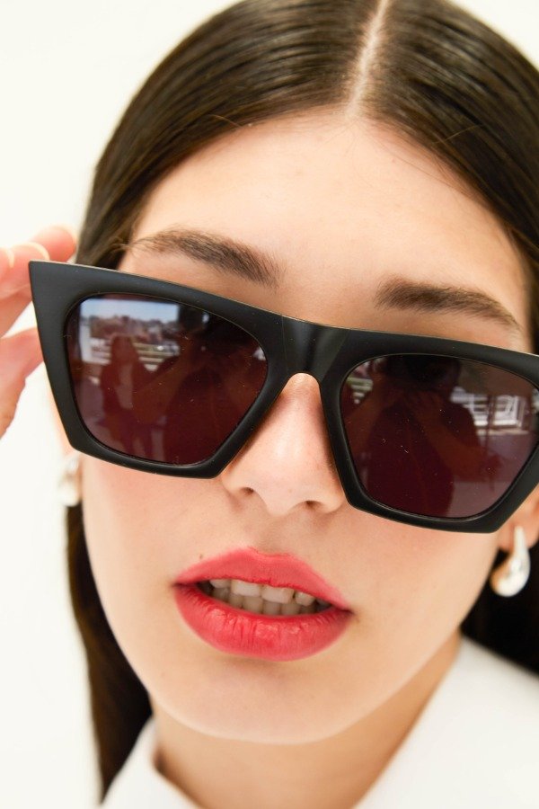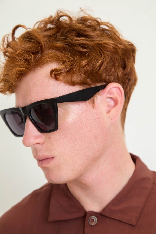 Anteojos de sol fabricados en acetato resistente con marco negro mate con cristales orgánicos negros. Con protección UV400.