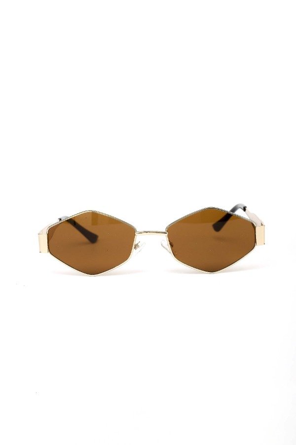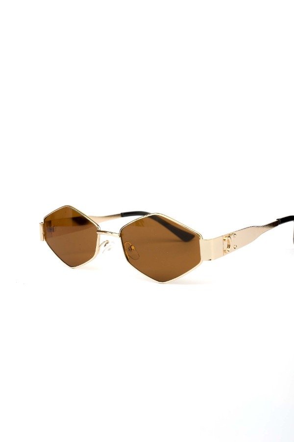Anteojos de sol fabricados en metal ultra resistente con marco dorado y cristales orgánicos. Con protección UV400 y bisagras metálicas. Medidas: Alto: 4 cm Ancho: 15 cm Profundidad: 15 cm