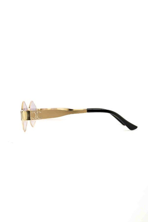 Anteojos de sol fabricados en metal ultra resistente con marco dorado y cristales orgánicos. Con protección UV400 y bisagras metálicas. Medidas: Alto: 4 cm Ancho: 15 cm Profundidad: 15 cm