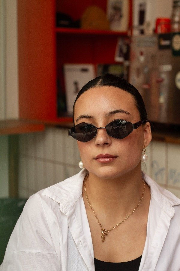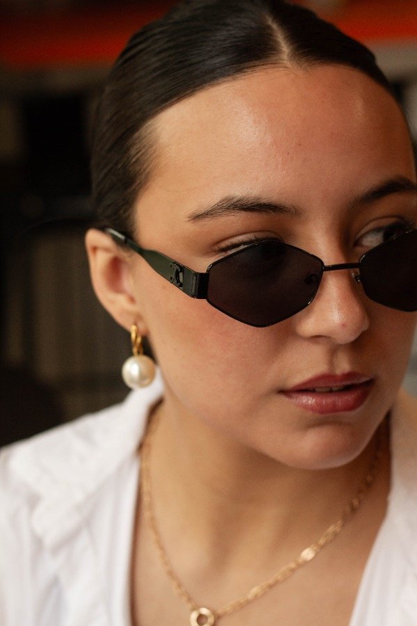 Anteojos de sol fabricados en metal ultra resistente con marco negro y cristales orgánicos. Con protección UV400 y bisagras metálicas. Medidas: Alto: 4 cm Ancho: 15 cm Profundidad: 15 cm