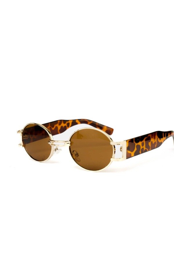 Con su forma ovalada, marco metálico dorado y patillas animal print, Mikonos es la combinación ideal de elegancia y personalidad.