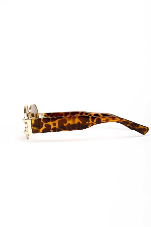 Material: marco metálico resistente con terminación dorada + patillas en acetato con diseño animal print.