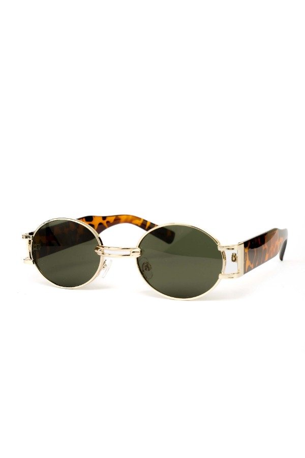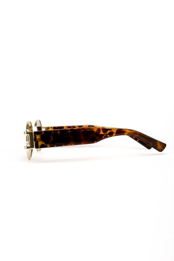Con su forma ovalada, marco metálico dorado y patillas animal print, Mikonos es la combinación ideal de elegancia y personalidad.