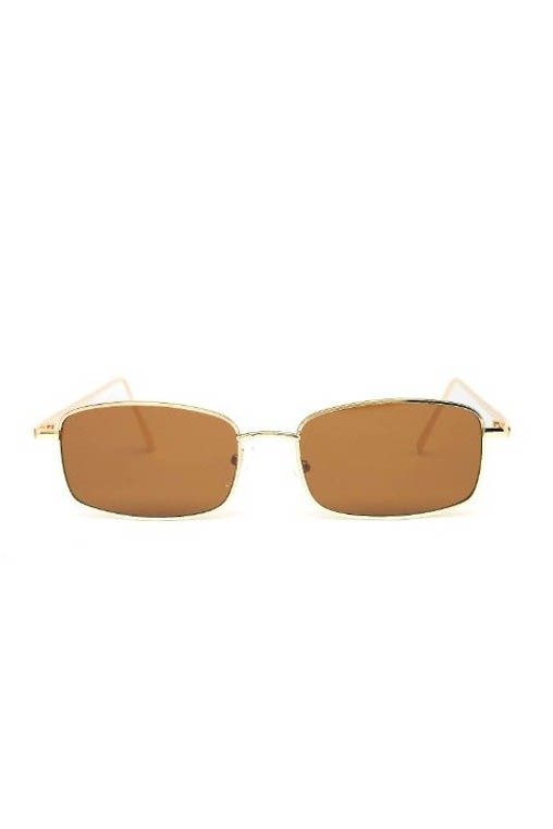 Anteojos de sol fabricados en metal ultra resistente con marco dorado y cristales orgánicos marrones. Con protección UV400.