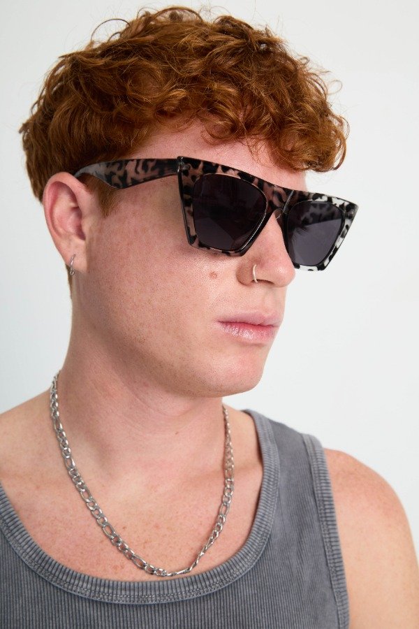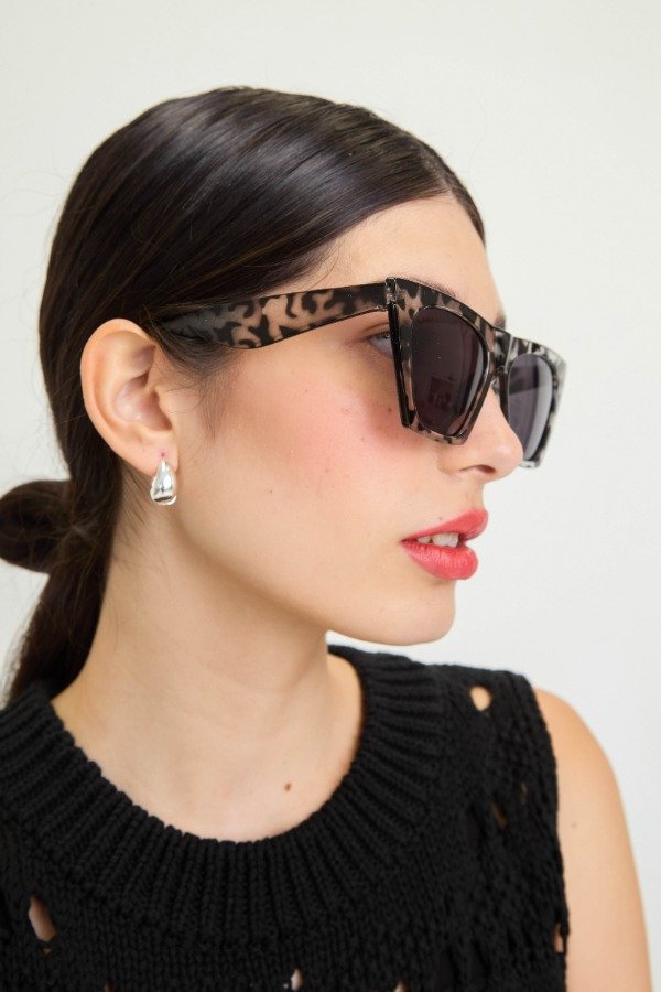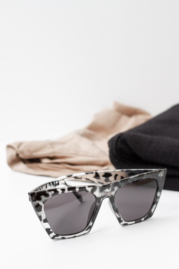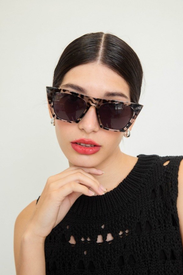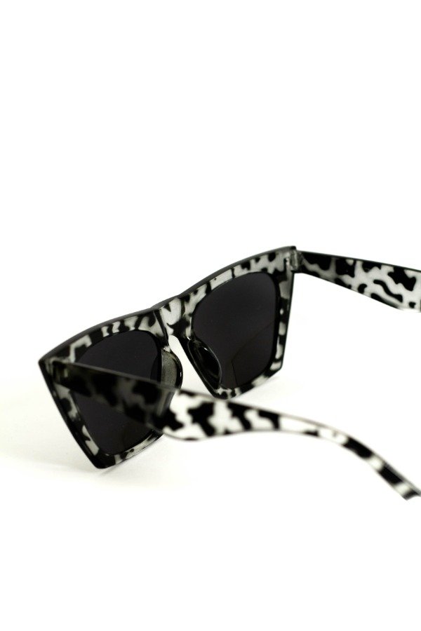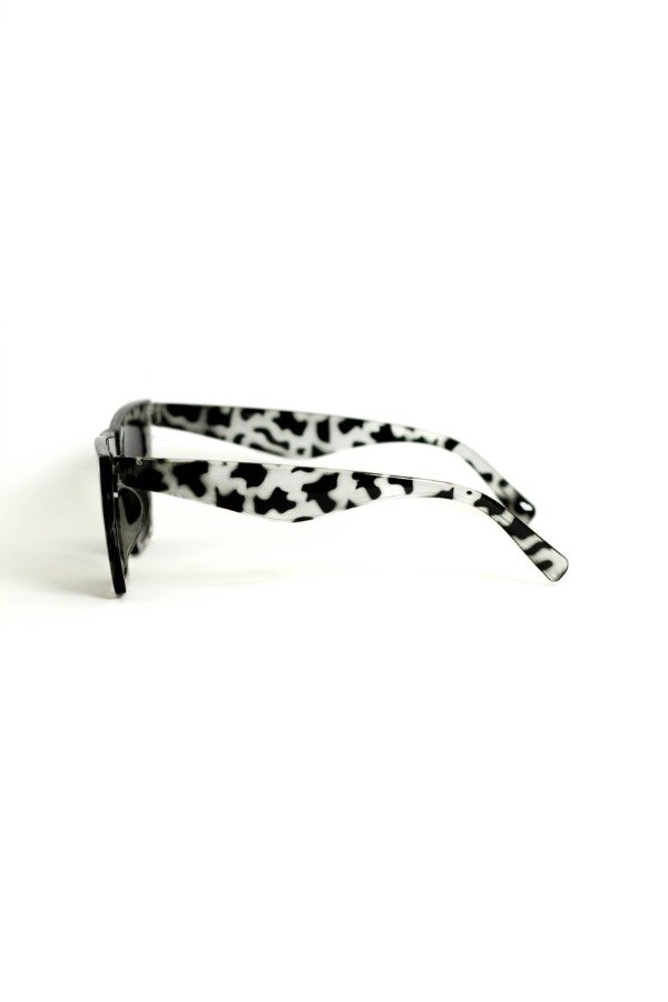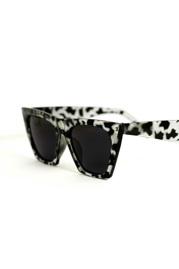 Anteojos de sol fabricados en acetato resistente con marco blanco y negro con cristales orgánicos negros. Con protección UV400.